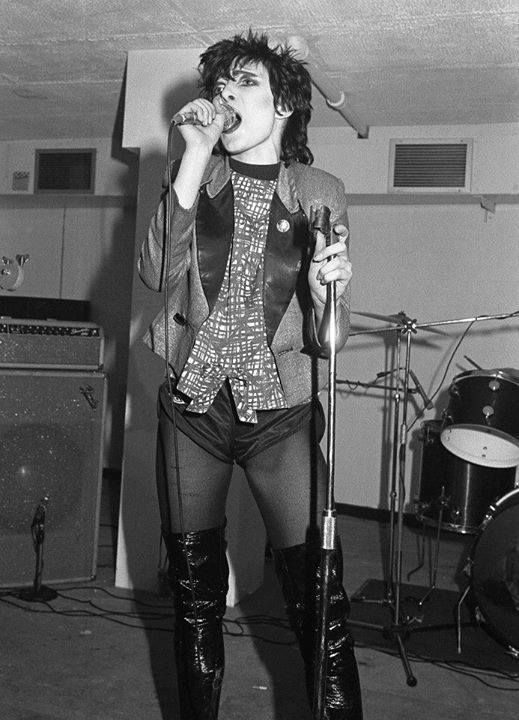 Siouxsie Sioux’s roots in the late 70’s British punk scene run deep, as she was very involved in the music and fashion of the time. She was one of the more well-known members of the Bromley Contingent- a group of punk followers of the Sex Pistols, who dressed eccentrically and helped establish what would later become “mainstream” punk fashion. This usually consisted of leather, lingerie, chains, safety pins, and lots of D.I.Y. made clothes, most of which are all still seen in punk fashion today. You can see some of this exemplified in the photo below (Warning: if female nipples offend you, scroll past).